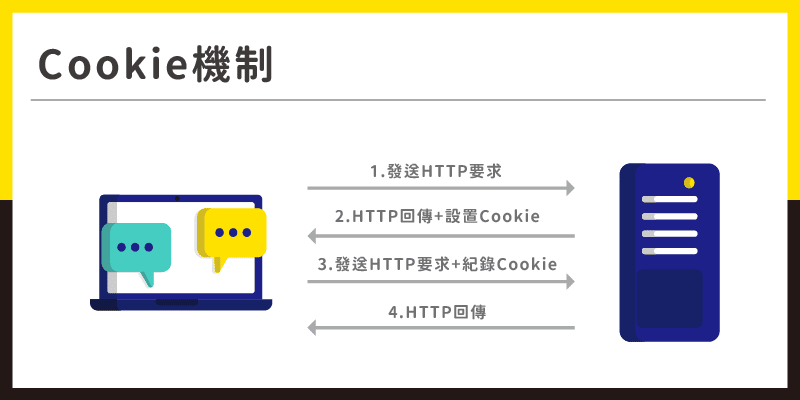 也因為Session是有時效的限制,對優化網站體驗來說作用並不大,所以就有人發明了Cookie。伺服器可以利用 Set-Cookie 這個語法讓瀏覽器儲存一些內容,「內容」也就是我們所談的Cookie,而這些內容會在瀏覽器發送 Request 時從伺服器回傳。