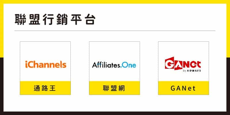 如果品牌已經擁有電商網站,可以選擇和已串聯許多廠商的大型聯盟行銷平台合作,像是 Affiliates.One 聯盟網 和 ichannels 通路王……等。如果還沒有電商網站或是不想依賴聯合行銷平台也可以開始著手規劃自架網站平台、自行開發計算成效的追蹤機制。