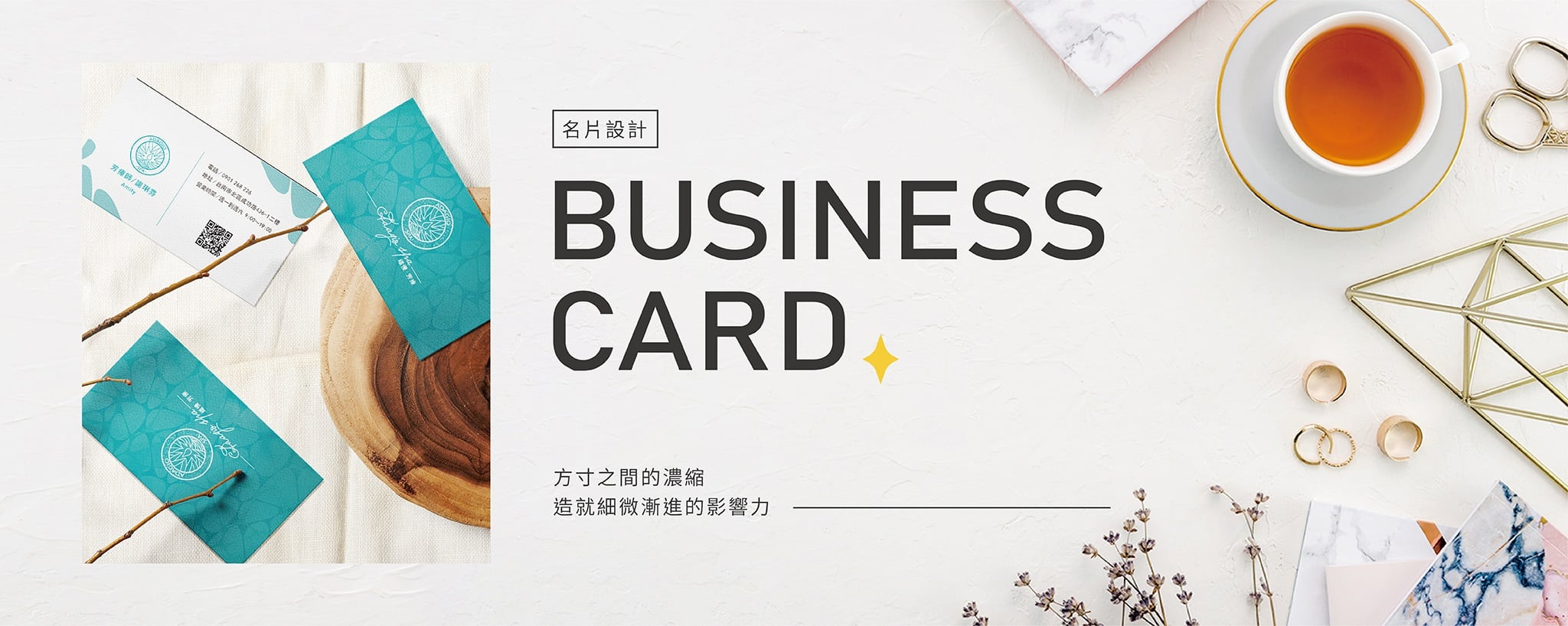在方寸之間悄悄埋下專屬品牌的創意巧思,讓顧客在觸碰、閱覽名片的過程,從Logo設計、從字體搭配、從紙材選擇之中,完整對品牌的想像與期待,擁有更加深刻的認同,進而與品牌產生密不可分的情感連結。