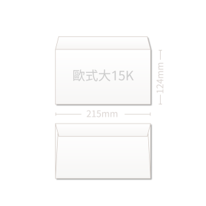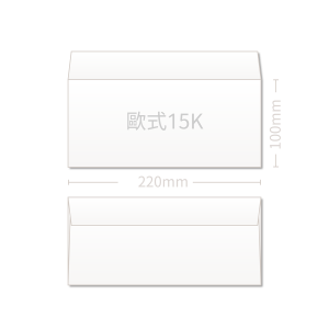 15K 是典型的長條比例,信件感明顯,視覺俐落,常用在日常商用寄送但又想保持整齊形象的場合。