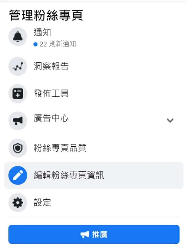 如果你有保持登入Facebook的習慣,也能夠直接雙擊此處直接進入粉絲專頁設定程序。
