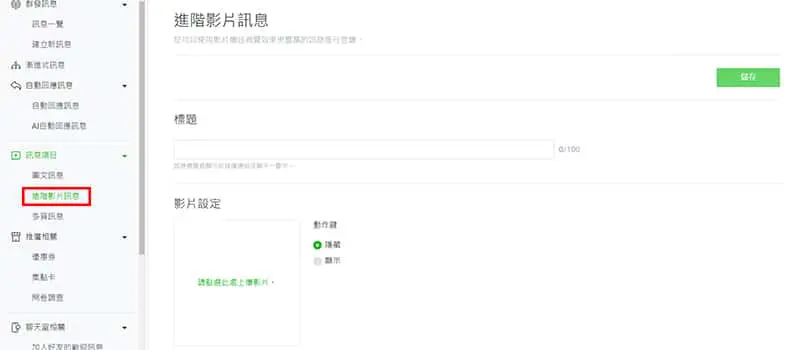 比起圖片或文字敘述,影片能用更生動簡潔的方式,展現產品厲害的特點,並且動態影片能有效減輕沒有看見實體產品的疑慮,同時也給予對產品的想像空間,建立起品牌信任。進階影片訊息的建立,可以在LINE後台這樣操作: