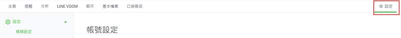 在LINE官方帳號後台介面右上角有一個設定選項,進入頁面會看到大部分的基本資料、權限、回應設定、模組功能集,還有與帳務相關的資訊都在這裡。初期帳號在設定需要以下列這些項目為優先,剩餘的可以等之後有需求,或要擴展功能時再行設置,不需要急著一時就要把所有的資訊填寫完畢。