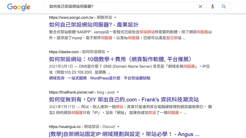 不管是否只是單純的關鍵字搜尋,亦或是網路爬蟲追求貼近使用者體驗的語意搜尋,搜尋結果首頁的標題上一定會有一組關鍵字出現。