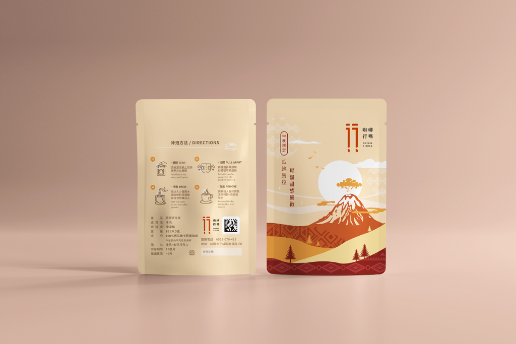 設計師以瓜地馬拉多山的地形為出發點,呈現高山和火山環繞的煙霧繚繞的景象,這一景象不僅暗示了當地的自然環境,也隱喻了咖啡的濃郁香醇。這樣的設計巧妙地將產地的地理特徵與產品的風味相結合,讓消費者能夠在視覺上感受到咖啡的豐富層次。