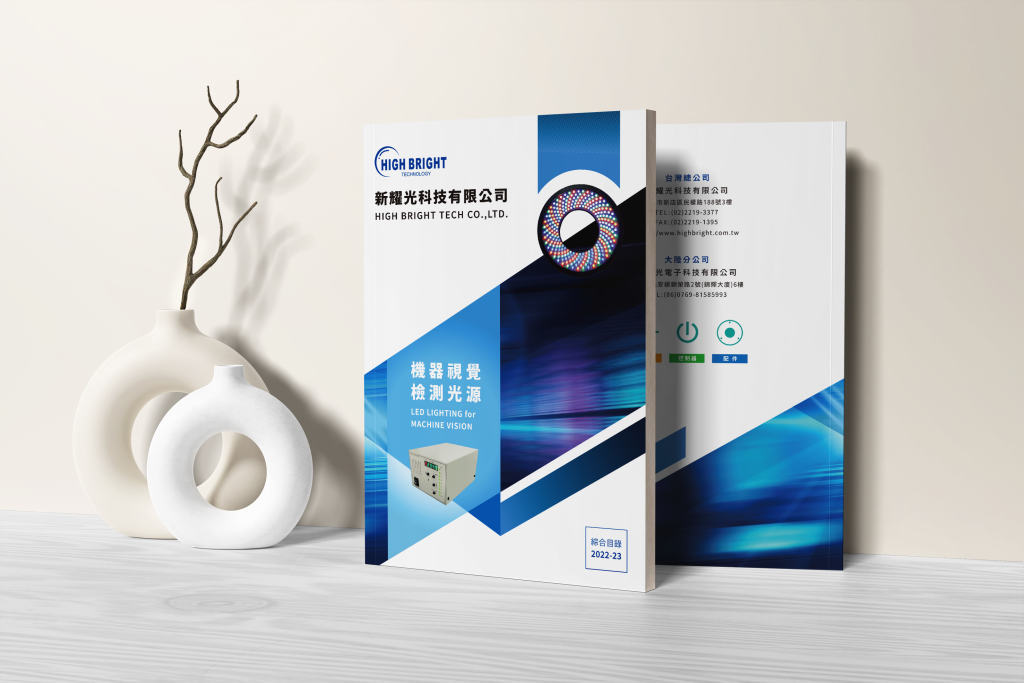 封面中央突出呈現的視覺系統光源和LED電源供應器,不僅直觀地呈現公司的主要產品,同時為讀者提供了明確的焦點。這是一個視覺引導,讓拿到型錄的人可以迅速理解並深入了解公司的核心產品與技術優勢。