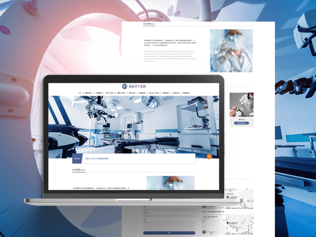 配色以藍色系為主,因藍色沉穩的特性,給人帶來理智、準確的意象,同時象徵著平靜與信任,適用於醫療及科技產業,整體以簡約風格呈現,沒有過多色彩的裝飾及點綴,瀏覽者在使用時能將注意力更集中於內容本身,同時更具俐落、專業的感受。