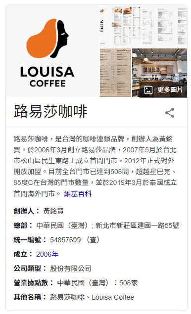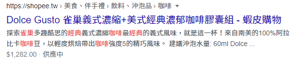 經過資料結構化的網頁,可以讓你在SERP的搜尋版面看起來更豐富、漂亮,它提供了多種資料的標記方式,包括圖片、產品、位址、價格…等等,當我們將某個部分結構化,就可以呈現出標記的項目,像是在地商家、部落客寫作、FAQ常見問題、或是產品資訊也會經常使用。比如說我們在網上搜尋咖啡廳,有無經過結構化資料的商家呈現大不相同,經過結構化的咖啡廳網頁我們添加了一些關於店家或是商品屬性的標記,就會呈現出評分星等、商品、價格、聯絡資訊等等,如果我們將圖片也進行標記,還可以在搜尋結果中看到食物或是咖啡廳的圖片。