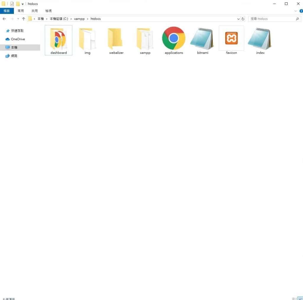 如果一開始在安裝XAMPP這一套網站伺服器程式時,預設安裝位置沒有變更的話,網站資料夾會在 C:\xampp\htdocs 這個資料夾裡頭,只要把HTML、PHP丟進這個資料夾,就可以透過瀏覽器進行瀏覽。