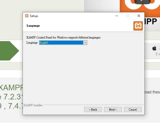 XAMPP軟體沒有提供繁體中文選擇,所以挑選預設系統語言English就可以了,