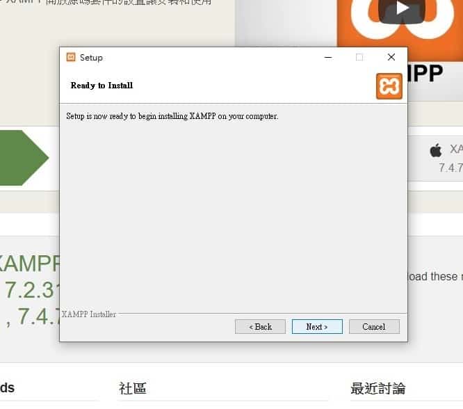 XAMPP再次詢問是否確認安裝;直接點擊Next> 。