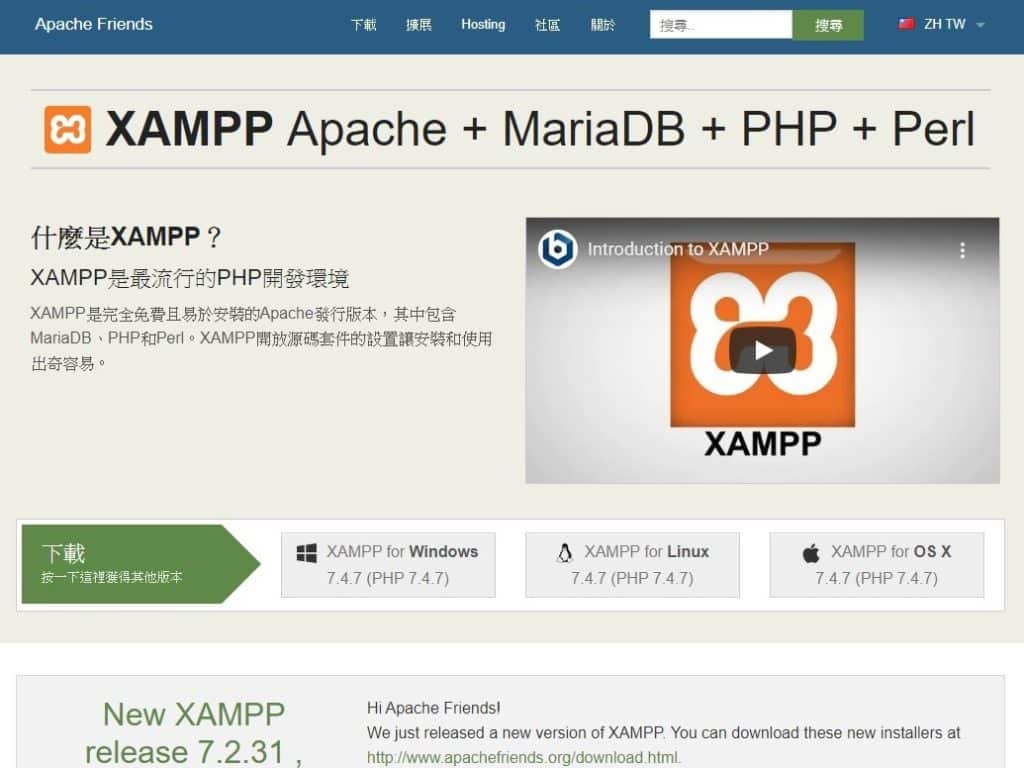 下載網址:https://www.apachefriends.org/zh_tw/index.html