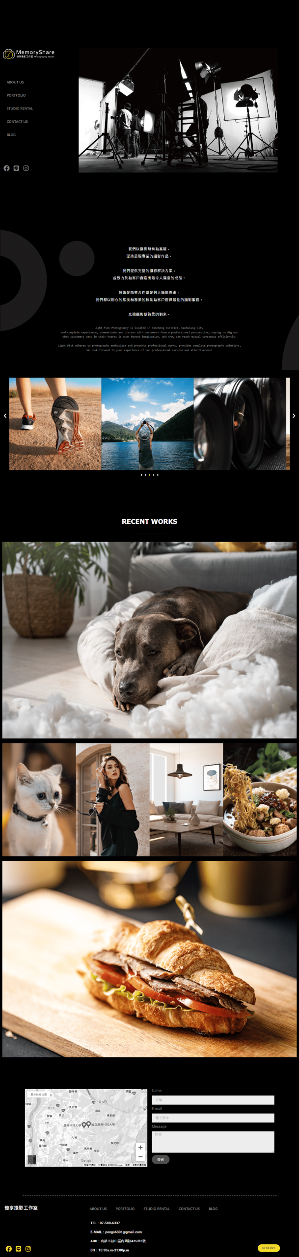 我們在網頁的底部同樣增設了導航菜單,使得用戶在瀏覽到頁面最下方時,無需返回頂部即可輕鬆跳轉至其他頁面。此外,當鼠標懸停在作品集圖片上時,圖片上會覆蓋上黃色的透明背景,使其與其他作品區分開來,同時保持整個網站的視覺一致性。